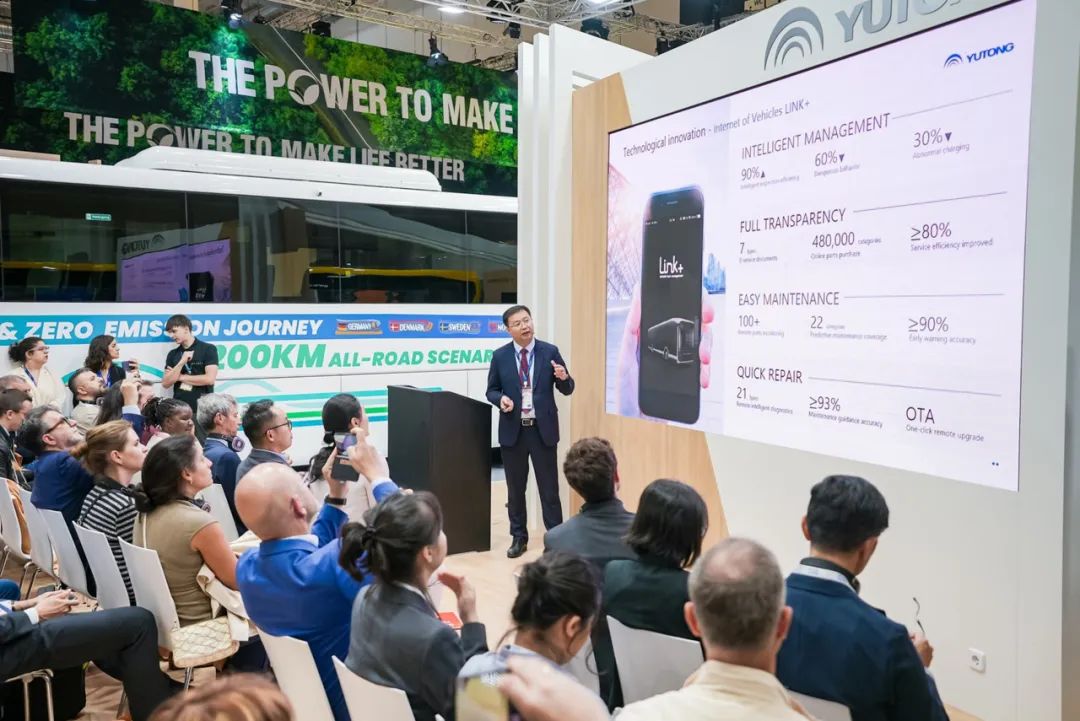 展馆内,宇通客车IC12E、U12展位吸引了诸多参会代表驻足及登车参观,频频点赞“中国造”新能源客车。其中,本次亮相的新一代城间车IC12E,定位于“更专业的纯电城间车”,最高可达610km续航里程,最大爬坡度达20%,能够适应多重复杂路况,满足欧洲城间交通线路的多样化运营需求。