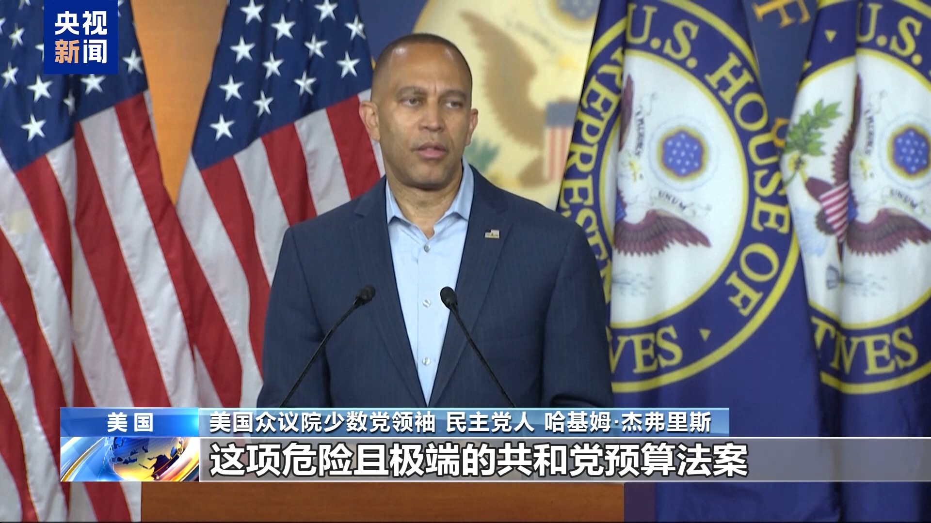 美国众议院少数党领袖民主党人哈基姆·杰弗里斯:这项危险且极端的共和党预算法案,将导致很多美国人因无法获得医疗保险而失去生命。众议院民主党人将在接下来的几个小时,将在今天、明天、本周乃至更久,竭尽全力阻止该法案成为法律。