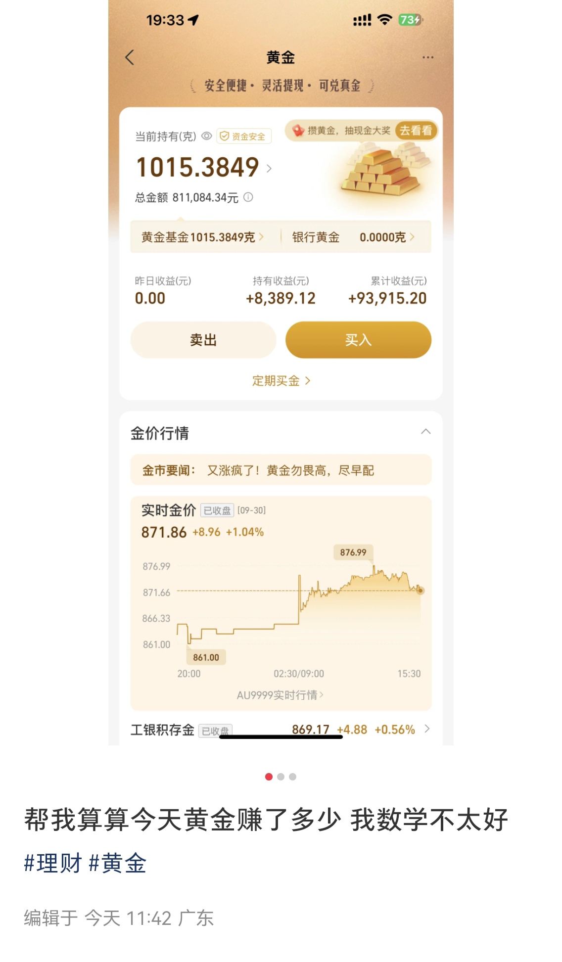 当金价开启暴涨模式,曾经执着于囤金的黄金爱好者,成了这个国庆最懂“快乐”的人:别人晒旅行风景,他们晒黄金收益,这份专属的节日喜悦格外有分量。
