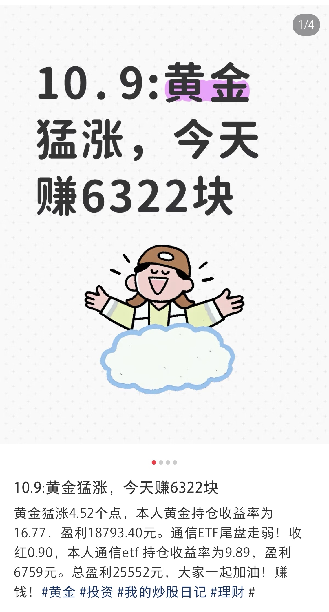 “那段时间,每天早上睁眼第一件事就是看金价,看着数字往上跳,比出去玩还开心,这绝对是假期最大的幸福!”不过,她也略带遗憾地向记者坦言:“现在看着这涨幅,真后悔当初没多囤点,感觉仓位太轻了,少赚了不少。”