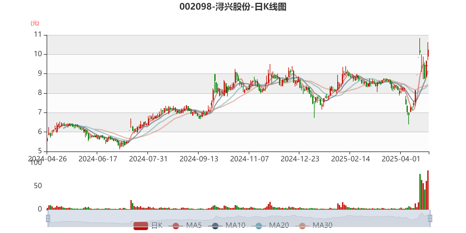 股东名称持流通股数(万股)占总股本比例(%)变动比例(百分点)天津汇泽丰企业管理有限责任公司895025不变福建浔兴集团有限公司6866.2719.17952不变诚兴发展国际有限公司483013.49162不变厦门时位宏远股权投资管理合伙企业(有限合伙)767.472.143776-0.450魏巍711.461.987311-0.771周杏英6121.709497-0.127张鑫5781.614525不变肖飞492.781.376472-0.081张德胜371.031.036397不变交银施罗德启诚混合型证券投资基金325.410.908966-1.175值得注意的是,中登公司数据显示,截至2025年4月25日,浔兴股份27.14%股份处于质押状态。年报显示,第一大股东天津汇泽丰企业管理有限责任公司质押8950万股公司股份,占其全部持股的100%;第四大股东厦门时位宏远股权投资管理合伙企业(有限合伙)质押767.47万股公司股份,占其全部持股的100%。