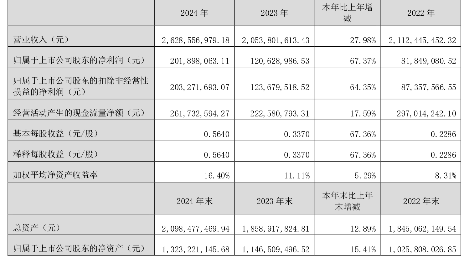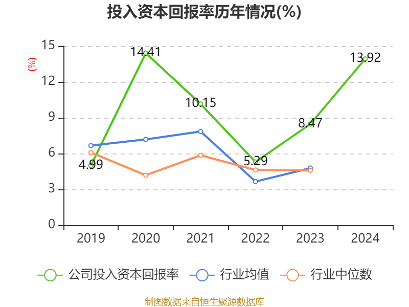 数据显示,2024年公司加权平均净资产收益率为16.4%,较上年同期上升5.29个百分点。公司2024年投入资本回报率为13.92%,较上年同期上升5.45个百分点。