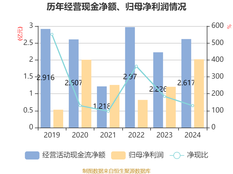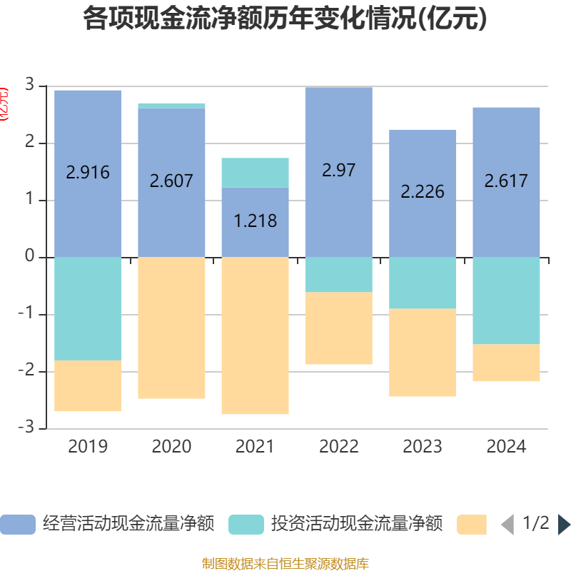 截至2024年,公司经营活动现金流净额为2.62亿元,同比增长17.59%;筹资活动现金流净额-6453.82万元,同比增加8891.74万元;投资活动现金流净额-1.53亿元,上年同期为-9077.1万元。