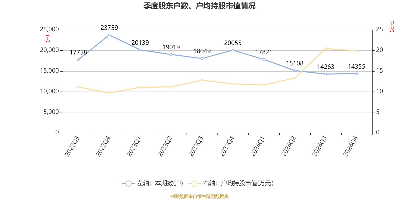 年报显示,2024年末的公司十大流通股东中,持股最多的为天津汇泽丰企业管理有限责任公司,占比25%。在具体持股比例上,厦门时位宏远股权投资管理合伙企业(有限合伙)、魏巍、周杏英、肖飞、交银施罗德启诚混合型证券投资基金持股有所下降。